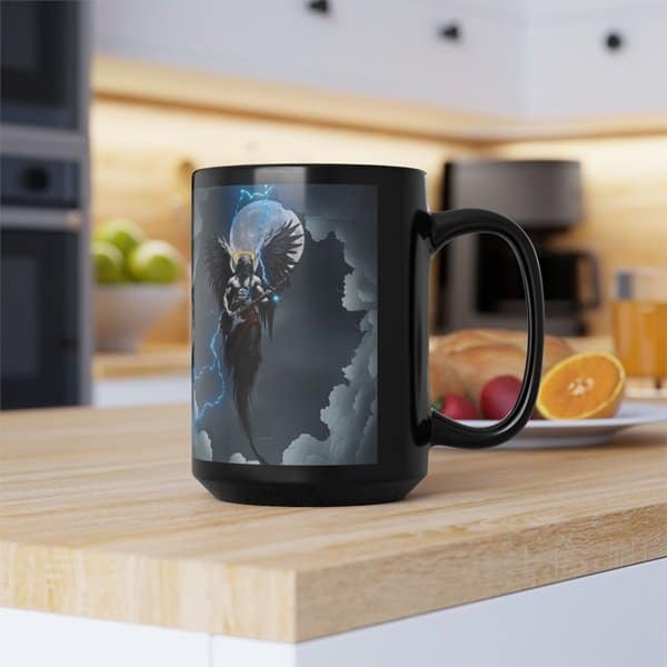 This striking Black Mug is perfect for adding a touch of personality to your daily coffee or tea routine. With its glossy ceramic finish, it embodies a sleek and modern vibe, making it not just a kitchen essential, but a statement piece. Ideal for those who appreciate unique designs, it’s a wonderful gift for friends and family who love art or fantasy themes. Use it to enjoy your favorite hot beverages at home or in the office. This mug is versatile for any occasion, including birthdays, holidays, or just as a thoughtful surprise for loved ones. Embrace the energy of creativity and style with every sip!