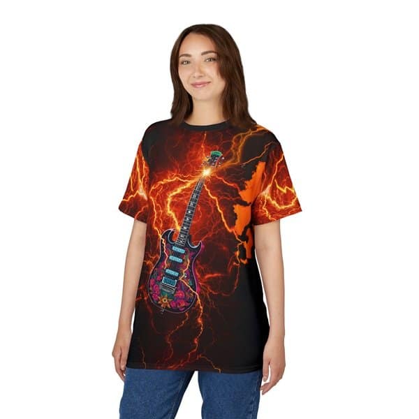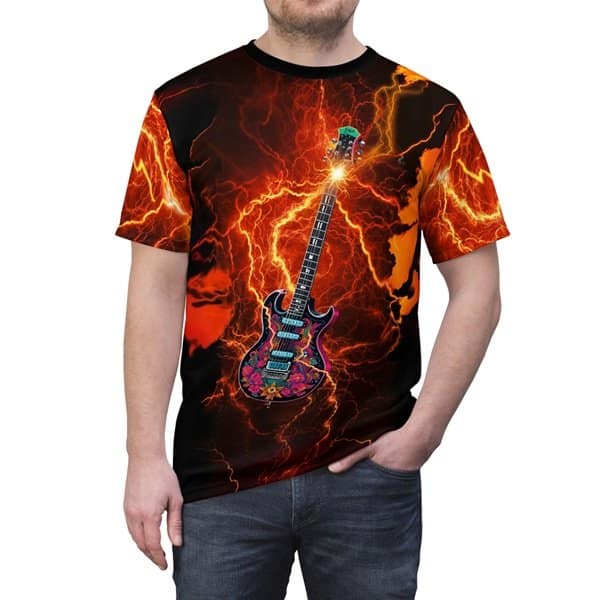 Rock your style with our Electric Guitar T-shirt. This electrifying design features a vibrant electric guitar against a backdrop of lightning and fiery hues. Crafted from soft, breathable fabric, this t-shirt is perfect for making a bold statement. Let the thunder of rock ignite your look.