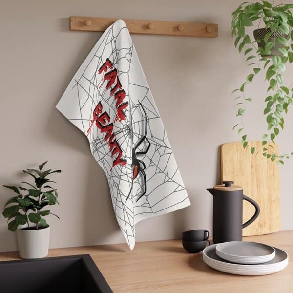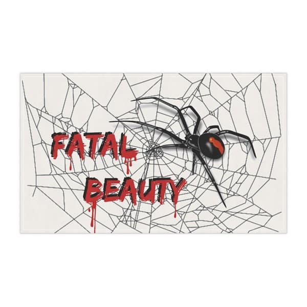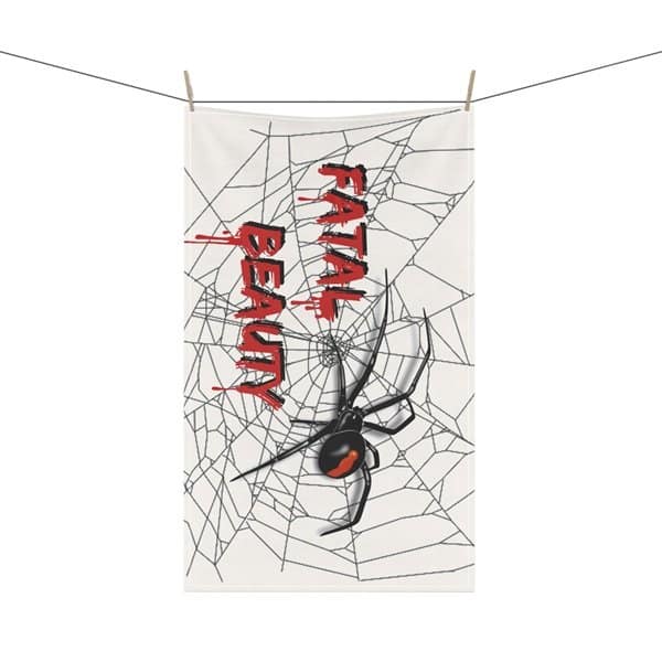 Bring a touch of captivating danger to your bathroom or kitchen with our Fatal Beauty Hand Towel. Featuring a striking black widow spider artwork paired with the bold Fatal Beauty phrase, this soft and absorbent towel adds a touch of gothic elegance to your everyday hand drying.