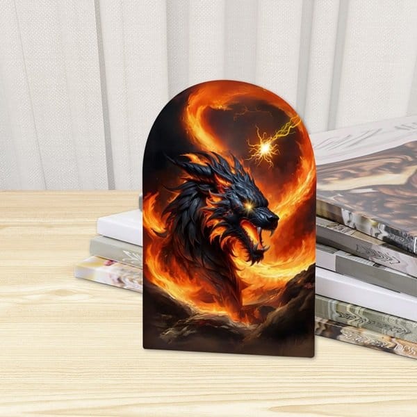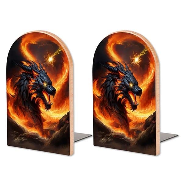 Guard your treasured tomes with the primal power of our Fiery Dragon I Bookends. This striking set features a fearsome dragon engulfed in flames and crackling with lightning, bringing a touch of mythical ferocity to your bookshelf. Perfect for fantasy enthusiasts and anyone who appreciates bold, eye-catching decor. Let this legendary beast protect your literary hoard.