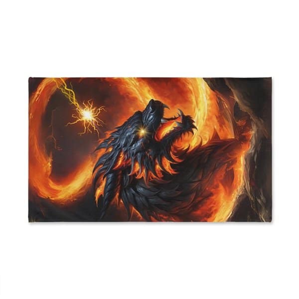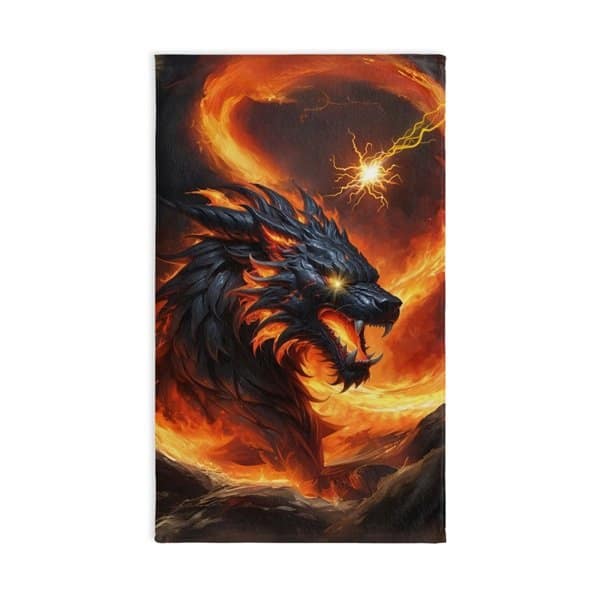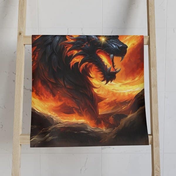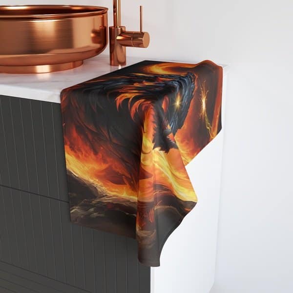 Vibrant and soft Hand Towel featuring a Fiery Dragon design, perfect for pool parties or as a unique summer gift for Dragon lovers. Ideal for those who enjoy fantasy themes and want to add a fun touch to their bathroom decor. Relevant for summer holidays, pool parties, and fantasy-themed celebrations.