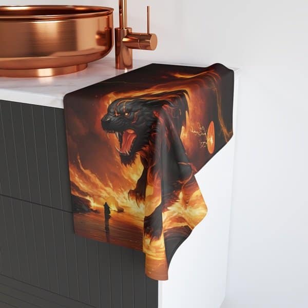 Introducing our vibrant and artfully designed hand towel, perfect for adding a splash of color and personality to your kitchen or bathroom. Crafted to evoke a sense of warmth and energy, this towel showcases striking imagery that captures attention and sparks conversation. Ideal for anyone looking to elevate their home décor, it’s a fantastic choice for art enthusiasts, animal lovers, or anyone who enjoys a unique touch in their space. It makes a fabulous gift for housewarmings, birthdays, or holidays like Christmas and Halloween. Bring a touch of creative flair into your daily routine with this stunning hand towel!