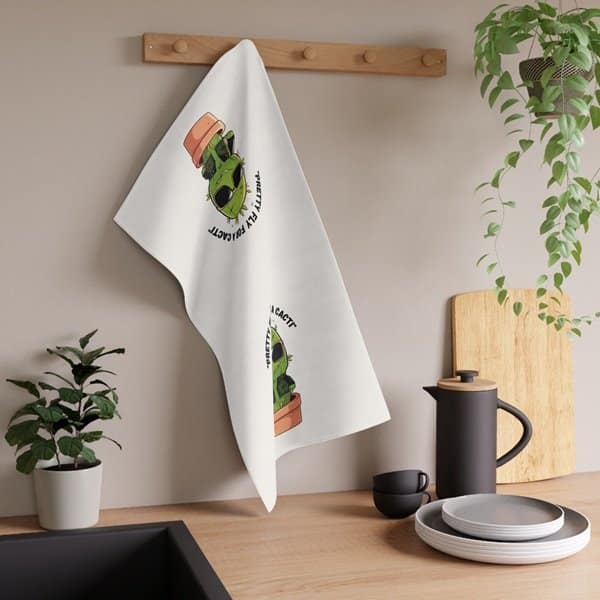 Introducing a delightful hand towel that brings a fun and quirky vibe to your kitchen or bathroom. This unique accessory, adorned with a playful cactus design, adds a splash of color and personality to any space. Perfect for those who appreciate a combination of functionality and whimsy, it’s a great addition to your decor. Ideal for gifting during housewarming events, holidays, or just to brighten someone’s day, this towel is especially loved by plant enthusiasts and anyone who enjoys a touch of humor in their home. Create a warm atmosphere in your living space with this charming hand towel, making every drying task feel lighter and more enjoyable.