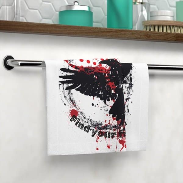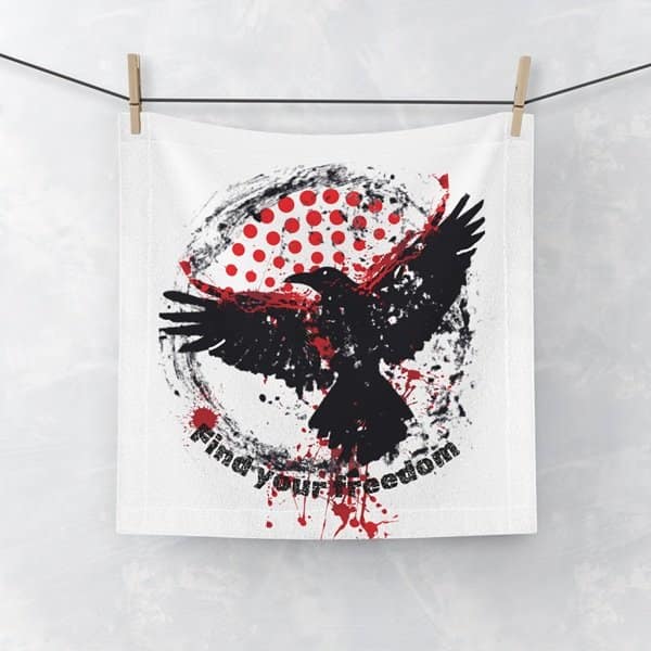 This isn’t just a face towel; it’s a piece of art. The “Find Your Freedom” Face Towel explodes with raw energy, featuring a striking raven in flight against a backdrop of gritty graffiti and trash polka-inspired splatter. It’s a visual punch, designed to grab attention and spark conversation.