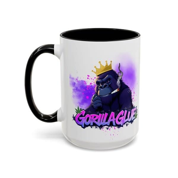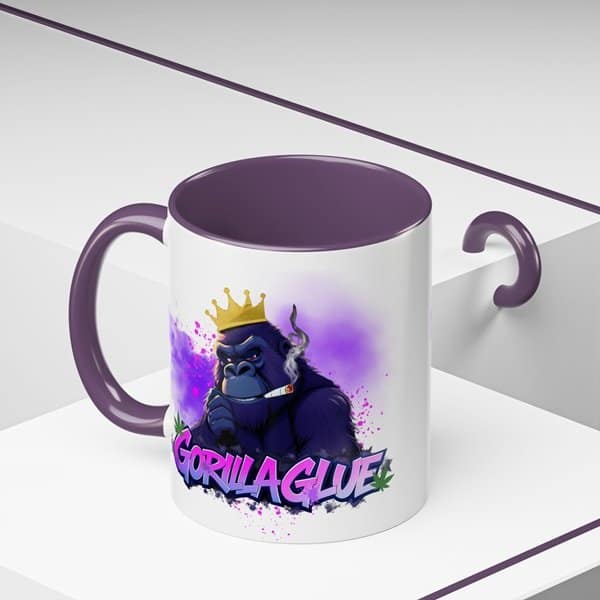 Wake and bake with the dopest mug in your cabinet! This ain’t your grandma’s coffee cup – this is a statement piece for the cannabis connoisseur. Featuring a fresh “Gorilla Glue” graffiti tag, this mug screams street art and celebrates the sticky icky we all know and love. Meet your next favorite morning companion, the accented ceramic mug.