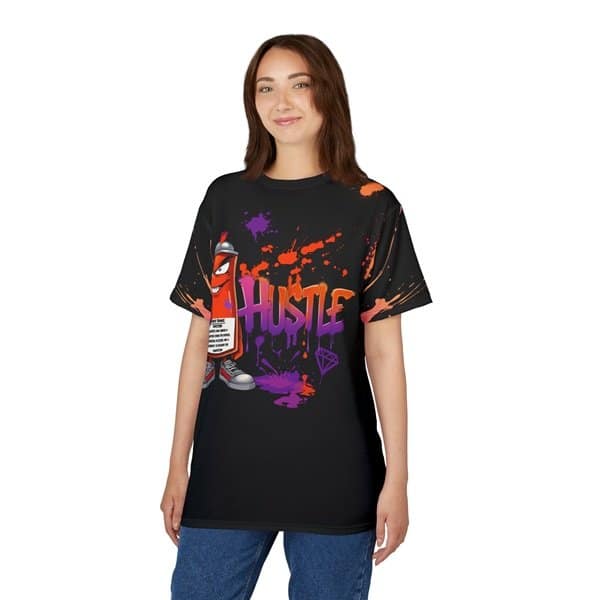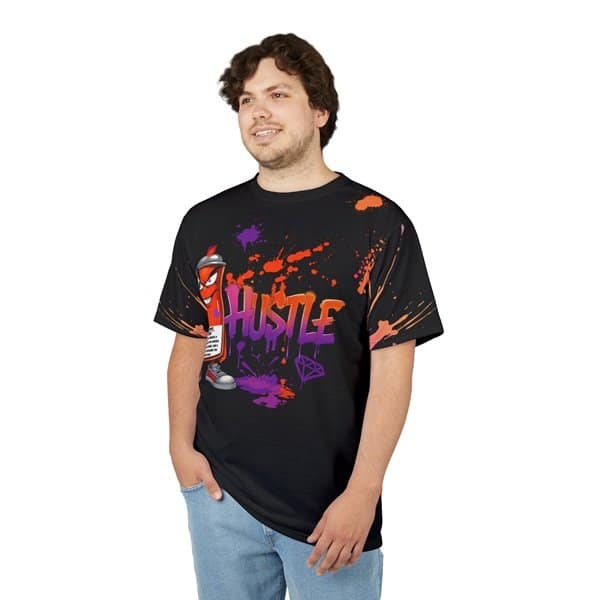 Graffiti Hustle Street Style Graphic Tee, perfect for streetwear enthusiasts and creatives. This urban fashion tee provides motivation and is a great gift for hustlers. Fits into the wardrobe of those who appreciate urban style and street art. Relevant for birthdays, holidays, and everyday wear.