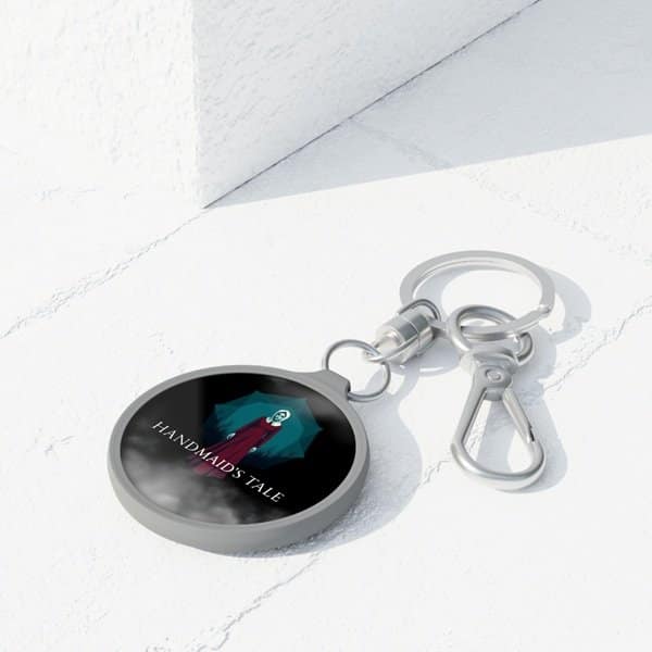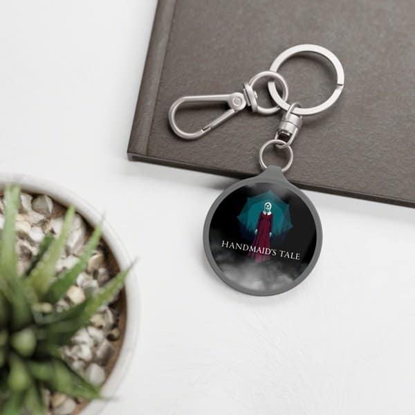 Keep a potent symbol of strength and resilience close at hand with our Handmaid’s Tale III Keychain. This impactful accessory features an evocative image inspired by the iconic series, set against a dark backdrop with a geometric shape and smoky effect. Crafted for durability, this keychain allows you to keep a meaningful message close, adding a touch of impactful symbolism to your keys or bags. Perfect for those who appreciate art with a message and want a constant reminder of inner fortitude in their everyday life. Let your keys carry significance.