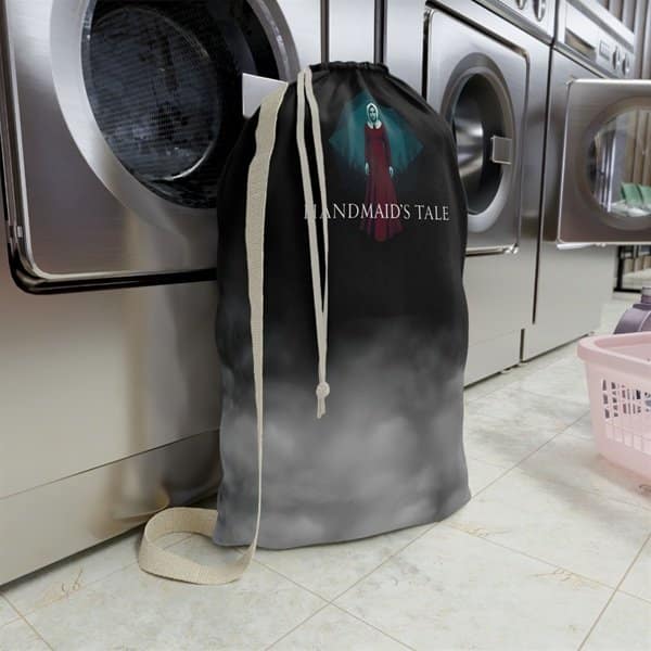 Carry a powerful symbol into your daily routine with our Handmaid’s Tale III Laundry Bag. This striking laundry solution features an evocative image of strength and resilience against a dark backdrop with a geometric shape and smoky effect, inspired by the iconic series. Crafted from durable spun polyester, this bag is built to handle your laundry while making a subtle yet impactful statement. The convenient drawstring closure keeps your clothes secure, and the woven shoulder strap makes transport easy. Perfect for those who appreciate art with a message and want to incorporate meaningful symbolism into their everyday life. Let your laundry carry weight. Available in two practical sizes.