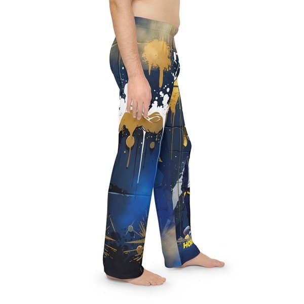 Experience ultimate comfort and style with these Men’s Pajama Pants, perfect for lounging at home or catching some well-deserved rest. Featuring a vibrant, eye-catching design, they bring a fun and artistic flair to your downtime. Tailored for modern gentlemen, these pajama pants are ideal for those who appreciate both comfort and unique style. Whether it’s a cozy night in, movie marathon, or a casual hangout with friends, these pants are the perfect choice. They make an excellent gift for birthdays, holidays, or just as a treat for yourself. Perfect for relaxing during any occasion, they elevate your loungewear game. Product features – Made from 100% polyester for durability and stretch. – Soft hand-feel due to high stitch density. – Lightweight fabric (5.6 oz/yd²) for comfort. – Elastic waistband ensures a snug fit. – Size and care label printed inside for convenience. Care instructions – Do not dryclean – Do not iron – Tumble dry: low heat – Do not bleach – Machine wash: warm (max 30C or 90F)