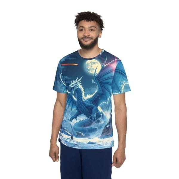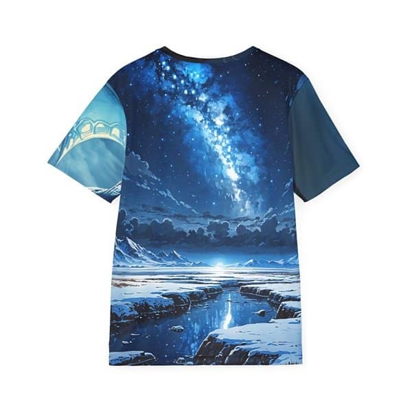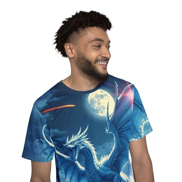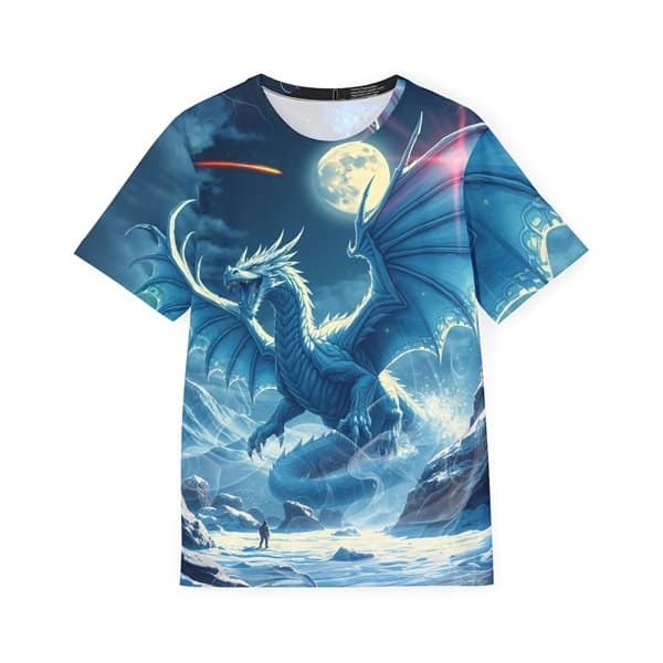 Ice Dragon Unisex Tee, perfect for dragon lovers and fans of fantasy art. This magical shirt features a unique graphic design that adds a celestial vibe to any outfit. Suitable for casual wear or as part of a costume for themed events and gatherings. Great gift idea for fantasy enthusiasts during birthdays, holidays, and cosplay conventions.