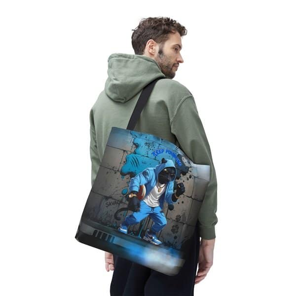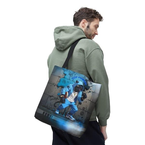 Introducing a stylish tote bag that seamlessly blends art and function. With its vibrant graffiti-inspired designs, this tote exudes a youthful, urban vibe, making it a perfect accessory for trendsetters and street art enthusiasts. Ideal for everyday outings, shopping trips, or as a gym companion, this bag not only looks great but also provides ample space for all your essentials. It’s suitable for anyone who appreciates unique, eye-catching fashion and is perfect for celebrations like birthdays, back-to-school, or simply as a thoughtful gift for a friend. Add a splash of creativity to your daily routine with this tote that reflects your bold personality! Product features – 100% polyester body for strength and durability. – Reinforced stitching on handles for added security. – Boxed corners for extra space and functionality. Three sizes offered, perfect for any occasion or need. Care instructions – Remove all items from the bag before cleaning. Suggested to pretreat visible stains with stain remover. Mix warm water with laundry detergent and clean the bag with terry washcloth or a soft bristle brush. Let the bag air dry.