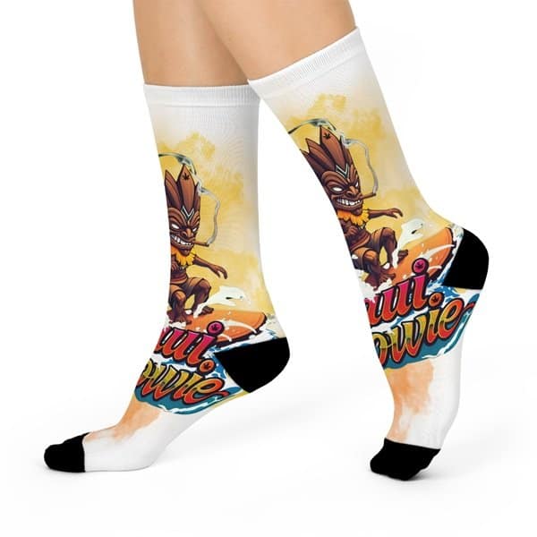 Step into island vibes with our Maui Wowie Tide Socks. This design features the fun Tiki character, bringing a touch of tropical energy to your footwear. Made with soft, comfortable material, these socks are perfect for everyday comfort. Let the Maui Wowie tide carry you through the day.