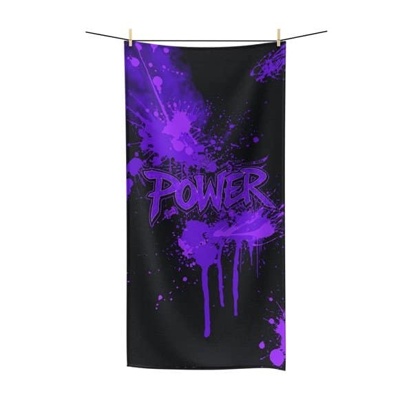Level up your towel game with the ‘Power’ graffiti towel. This ain’t your average bathroom accessory – it’s a statement piece that reps your street style, whether you’re hitting the beach, the skatepark, or just chilling at home. This towel features a dope ‘Power’ graffiti design, splashed with vibrant purple on a sleek black backdrop, giving off that raw, urban vibe. The drippy effects and bold lettering scream originality, perfect for anyone who sets their own trends.