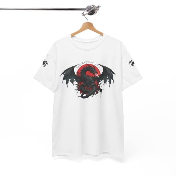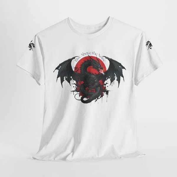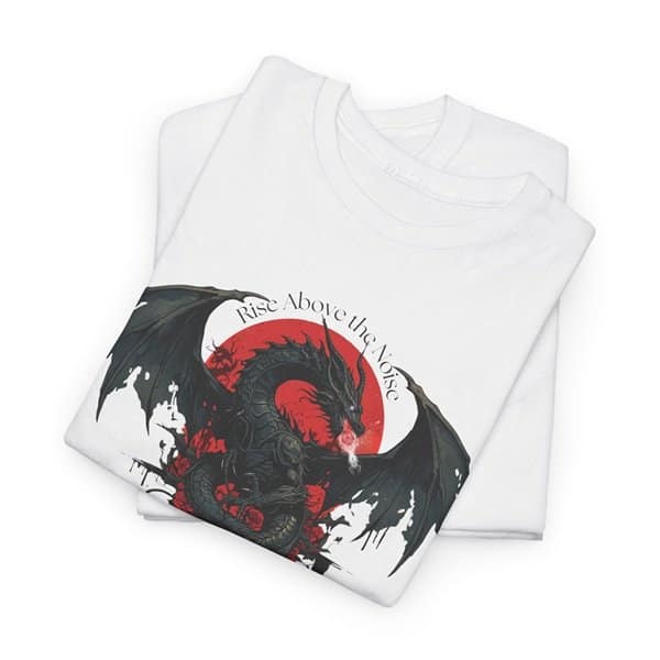Unleash your inner strength with our Shadow Dragon T-Shirt. Crafted from premium, breathable fabric, this tee features a bold black dragon design that commands attention. The vibrant red backdrop and ‘Rise Above the Noise’ slogan add a powerful touch, making it a statement piece for any wardrobe. Perfect for everyday wear or as a standout piece for concerts and events.
