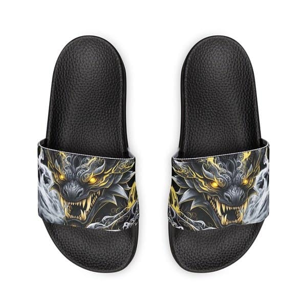 Step into primal comfort with our Tribal Dragon Deco Slides. These stylish slides feature the intricate Tribal Dragon design, combining comfort with a unique aesthetic. Perfect for lounging or adding an edgy touch to your casual look.