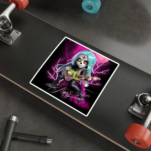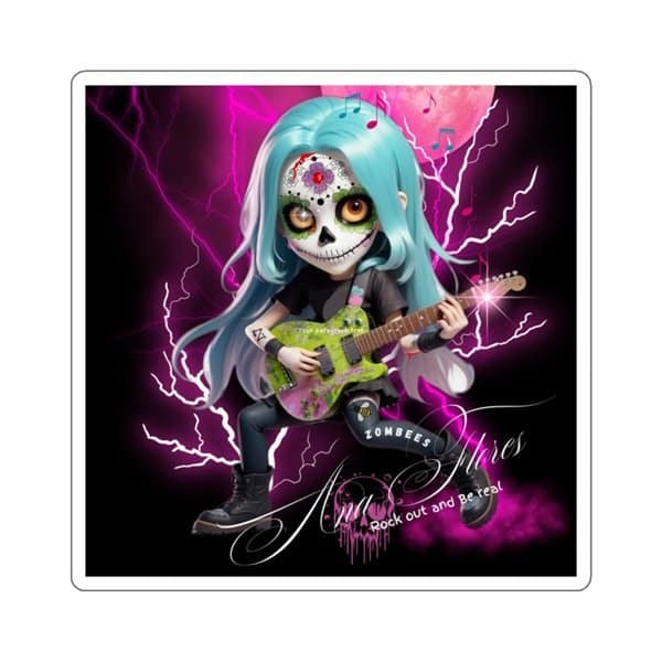 Stick it to the norm with the Zombees Ana Flores Guitar Riot Rebellion Square Sticker. This isn’t just a sticker; it’s a badge of guitar-driven rebellion. Perfect for personalizing your gear and showing your allegiance to the Zombees Girlz, it’s the ultimate accessory for a rock rebel.